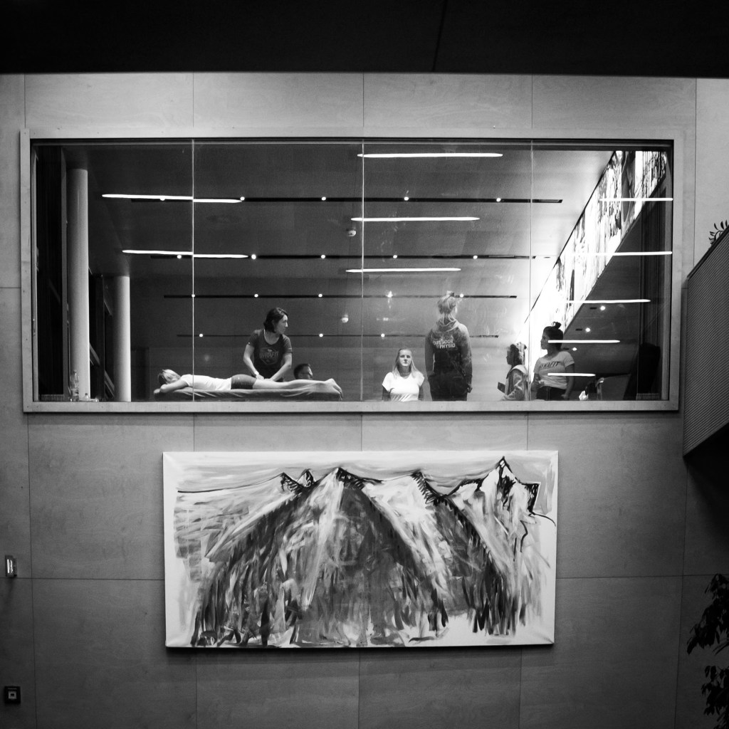 Man mano che procedi, però, cominci a intravedere un disegno che si delinea all’interno del turbine. E comprendi che, se vuoi sopravvivere, devi afferrarlo e farlo tuo, con tutti i suoi rituali e le sue fasi, senza mai lasciarti sopraffare da imprevisti e sorprese. Soprattutto se affronti la TAR nel modo più selvaggio, pochi hotel e tante notti passate nei CAMP. Il CAMP: asettica definizione per definire un accampamento disordinato di borsoni e effetti personali, sacchi a pelo e abiti stesi nella improbabile speranza di farli asciugare, odori di sudore e di pomate miracolose per lenire dolori e infortuni vari, code ai cessi e nelle docce, gente che russa e ricerche spasmodiche e disperate di prese elettriche per ricaricare smartphone e orologi. Capiti dove capiti, dal moderno centro sportivo con tanto di piscina, alla palestra di paese con docce fredde e pochi servizi, fino al rifugio antiatomico (giuro!) dove devi arrangiarti a dormire su uno scaffalone di legno tipo Ivar di Ikea, con il ventilatore dell’aria che ti assorda per tutta la notte. Ma il rituale è sempre lo stesso: arrivi, ti guardi un po’ in giro, disfi la borsa spantegando tutto quanto intorno a te nel disperato tentativo di trovare al primo colpo ciò che ti serve… Gonfi il materassino, stendi il sacco a pelo, doccia, preparazione di abiti e zaino per la giornata successiva, poi qualche momento di relax tutto per te, cercando di isolarti dal vortice che ti gira intorno… Intorno, la più varia umanità: chi fa stretching, chi dorme, chi studia la tappa del giorno dopo, chi chiacchiera, chi guarda fisso nel vuoto, quelli che si sono portati il Mac, quelli che estraggono un libro, quelli che cercano di fare il bucato…